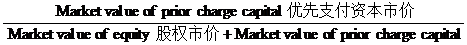 公司資本結構的financial risk財務風險可以通過gearing ratio杠桿比率、debt ratio債務比率、debt/equity ratio債務/權益比率或interest cover利息保障來衡量。