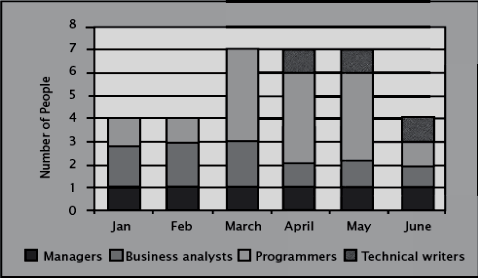 To construct a resource histogram, the numbers of people who are or could be working at the same time at a particular task are detailed.