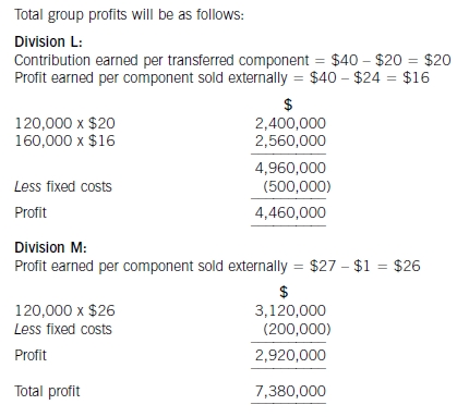 (c)Discuss the problems which will arise if the transfer price remains unchanged and advise the divisions on a suitable alternative transfer price for component L.
