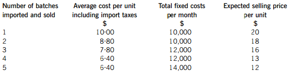 Jewel Co is setting up an online business importing and selling jewellery headphones. The cost of each set of headphones varies depending on the number purchased, although they can only be purchased in batches of 1,000 units. It also has to pay import taxes which vary according to the quantity purchased.