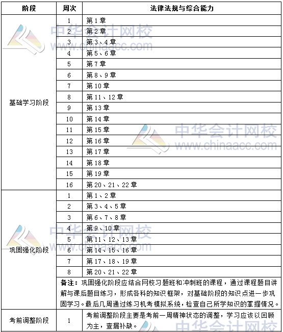 1、整體進度說明:本計劃表時間上共計25周;其中:基礎學習階段安排16周,鞏固強化階段安排8周,考前調整階段安排1周。學員可根據本表的提示,結合自己的工作,學習情況進行細化,并按網校要求完成聽課、做題的學習任務,基本可滿足考試需要。