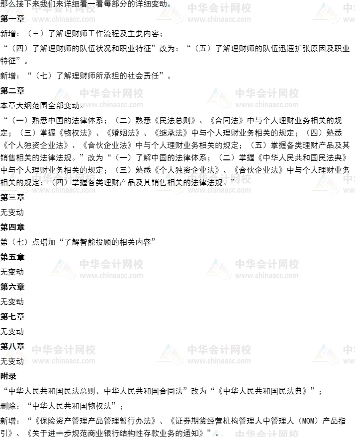 2021年銀行從業《個人理財(初級)》大綱對比