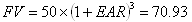 假如,將50元進行投資,年利率為12%,每半年計息一次,3年后的終值是多少?