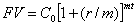 一年內對金融資產計m次復利,t年后,得到的價值是:![]()