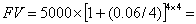 以單利計算4年后的本利和(終值)FV=5000*(1+6%*4)=6200