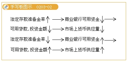 存款準備金制度的初始作用是保證存款的支付和清算,之后才逐漸演變成為貨幣政策工具。當中央銀行提高法定存款準備金率時,商業銀行需要上繳中央銀行的法定存款準備金增加,可直接運用的超額準備金減少,商業銀行的可用資金減少,在其他情況不變的條件下,商業銀行貸款或投資下降,引起存款的數量收縮,導致貨幣供應量減少。因此,存款準備金政策是以商業銀行的貨幣創造功能為基礎的,其效果也是透過影響商業銀行的貨幣創造能力來實現的。