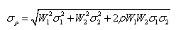 如果這兩種資產的標準差分別為σ1和σ2,兩種資產之間的相關系數為ρ(刻畫了兩種資產收益率變化的相關性),則該資產組合的標準差為