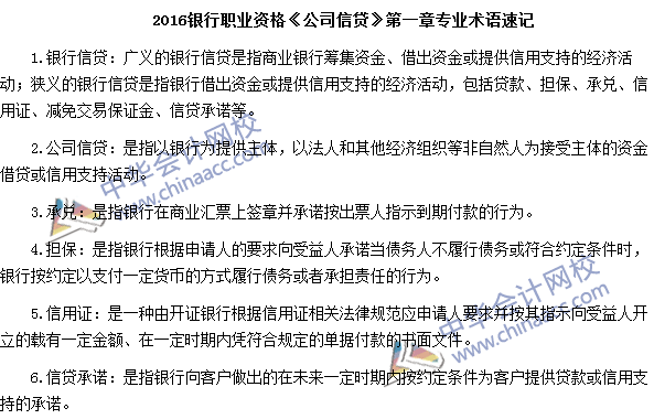 2016銀行職業(yè)資格《公司信貸》第一章專業(yè)術(shù)語速記