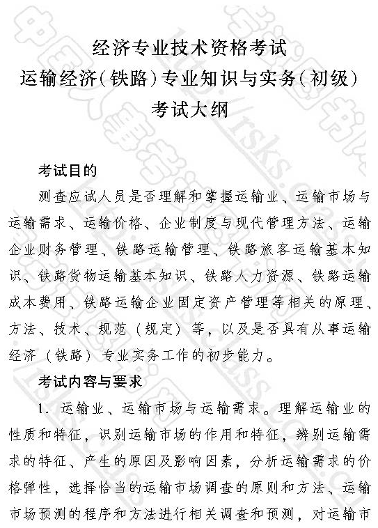2017年經濟師運輸經濟(鐵路)專業知識與實務(初級)考試大綱已經發布,為了幫助廣大考生順利通過2017年經濟師考試,網校經濟師頻道整理了運輸經濟(鐵路)專業知識與實務(初級)考試大綱,希望能幫助大家對考試有所把握。