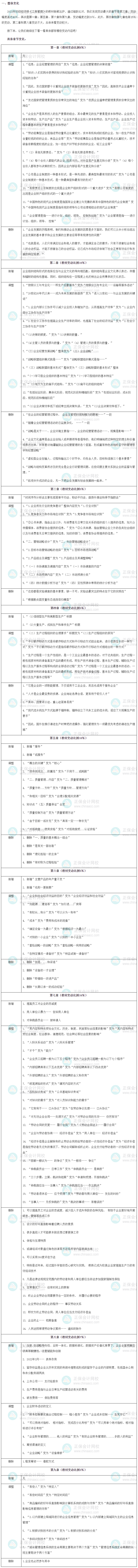 2023年初級經濟師《工商管理》教材變動解讀