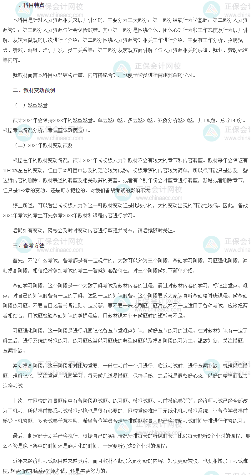 2024初級經濟師人力資源科目特點、教材預測及備考方法