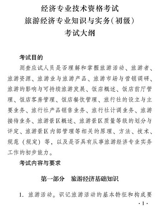 2018年初級經濟師旅游經濟專業知識與實務考試大綱