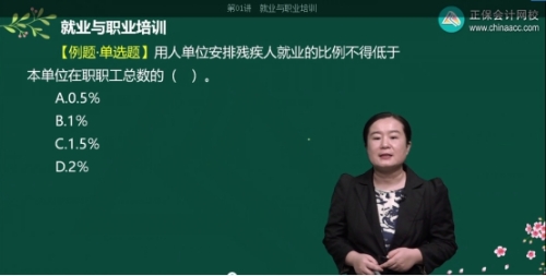 【解析】用人單位安排殘疾人就業的比例不得低于本單位在職職工總數的1.5%。
