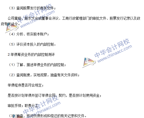 初級審計師《理論與實務》籌資與投資業務循環中的內部控制測評