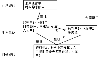 生產單位根據生產通知單,填寫領料單,由部門經理批準后,交倉庫部門領料。在手工系統中,領料單通常一式三聯,倉庫發料后登記材料明細賬留用一聯,領料單位保存一聯,財會部門進行材料收發核算、成本計算使用一聯。