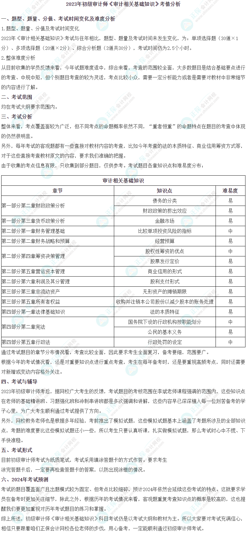 想知道2023年初級審計師考試難度如何?快來,網校老師特地對2023年初級審計師《審計相關基礎知識》考試情況進行了深入分析,欲知詳情,趕快往下看吧!