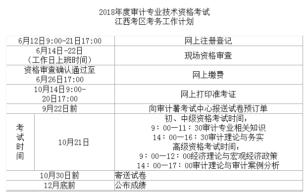 1.2018年度審計(jì)專(zhuān)業(yè)技術(shù)資格考試江西考區(qū)考務(wù)工作計(jì)劃