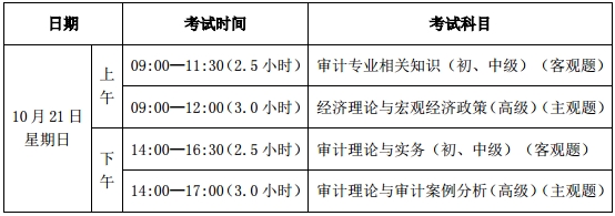 2018年度審計專業技術資格考試科目及時間表