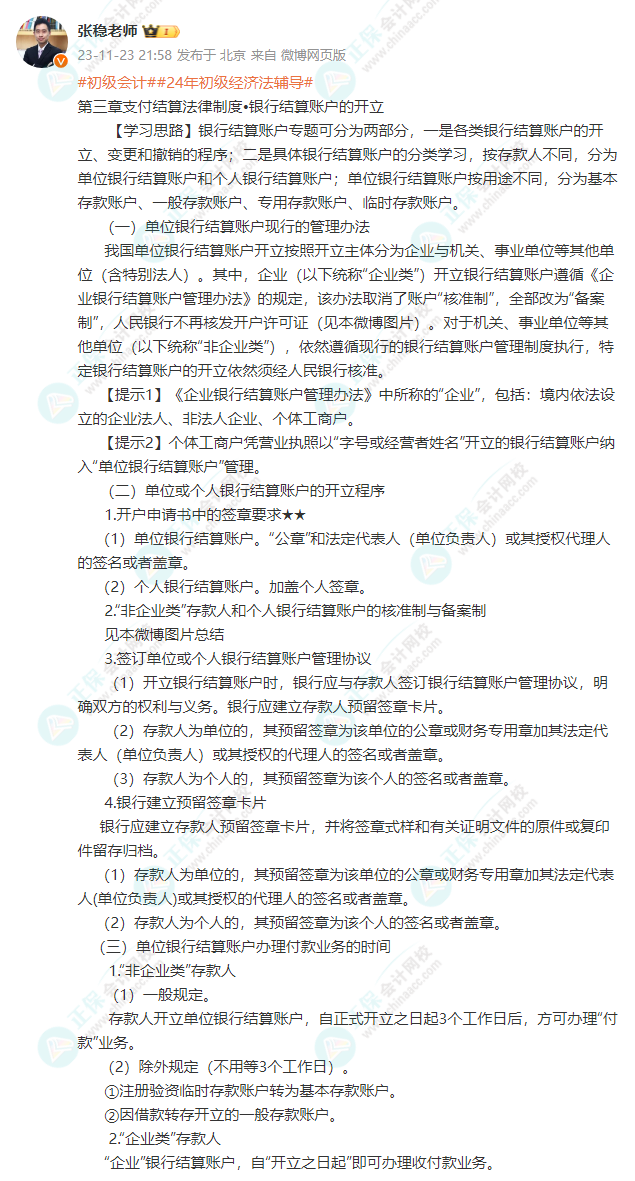 銀行賬戶分為單位銀行、個(gè)人銀行賬戶,大家或許都有一點(diǎn)熟悉,但是對(duì)于具體的用途劃分,開(kāi)立、變更、撤銷(xiāo)等或許不太明白,今天我們跟著正保會(huì)計(jì)網(wǎng)校張穩(wěn)老師一起來(lái)學(xué)習(xí):第三章支付結(jié)算法律制度-銀行結(jié)算賬戶的開(kāi)立 相關(guān)知識(shí)點(diǎn)。