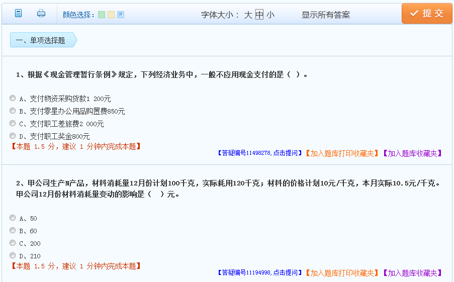 單選題、多選題、判斷題、不定項選擇題(題型完全跟試題保持一致,幫助學員提前進行考試演練)