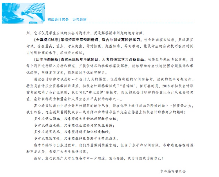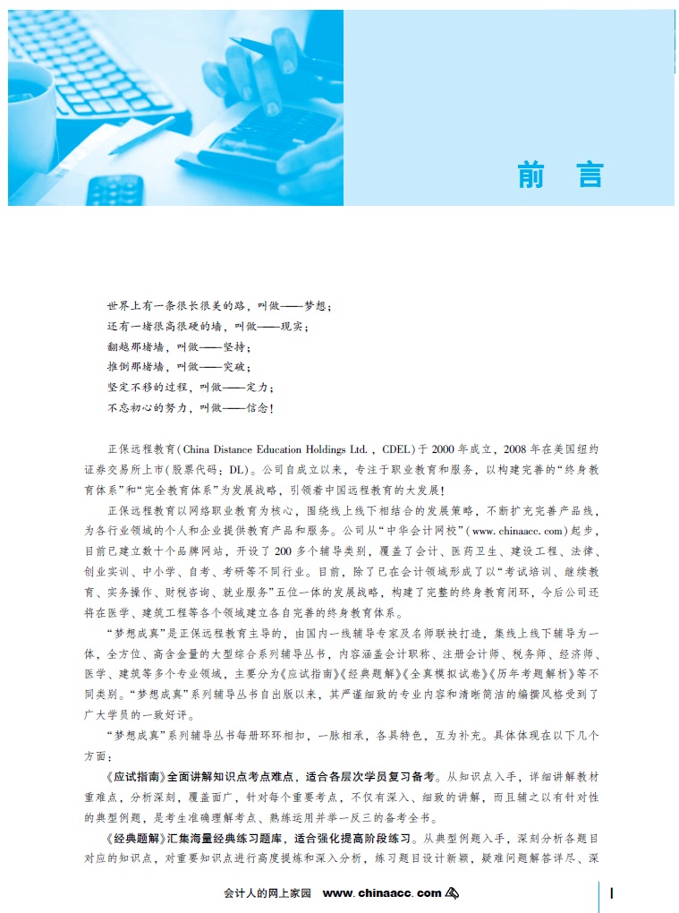 在《神雕俠侶》中郭靖曾說過“俠之大者,為國為民”的話,作為網校的一名小編,也要時刻謹記“一切以學員為中心”的服務理念。為此小編專門走訪了網校圖書編輯部,憑借鍥而不舍的毅力和百折不撓的精神,硬生生從編輯部套出了一批絕密的“內部資料”。還來不及撫平爭搶中的傷口,這就趕緊把內容提供給備考初級會計職稱的小伙伴們?。ù藭r腦海中閃現出‘刮骨療毒’的關二爺那雄偉的形象)。所以話不多說,快來揭開“夢想成真”輔導書的神秘面紗吧?。ㄐ【幆熗陚髮㈥懤m更新……)