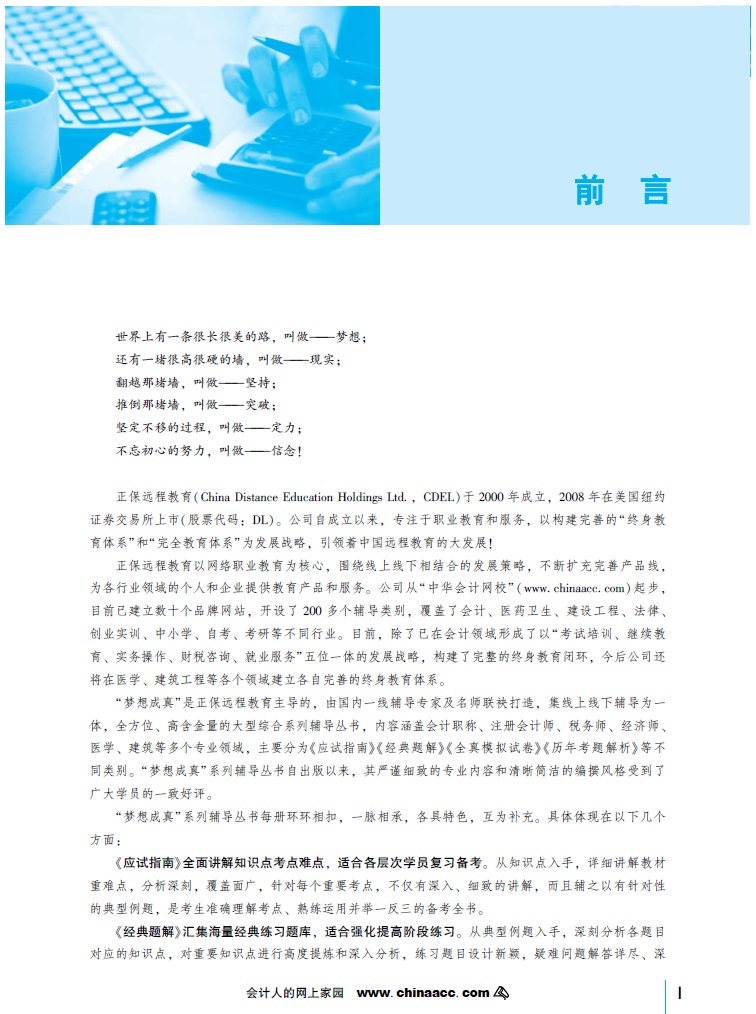在《神雕俠侶》中郭靖曾說過“俠之大者,為國為民”的話,作為網校的一名小編,也要時刻謹記“一切以學員為中心”的服務理念。為此小編專門走訪了網校圖書編輯部,憑借鍥而不舍的毅力和百折不撓的精神,硬生生從編輯部套出了一批絕密的“內部資料”。還來不及撫平爭搶中的傷口,這就趕緊把內容提供給備考初級會計職稱的小伙伴們!(此時腦海中閃現出‘刮骨療毒’的關二爺那雄偉的形象)。所以話不多說,快來揭開“夢想成真”輔導書的神秘面紗吧!(小編療完傷后將陸續更新……)
