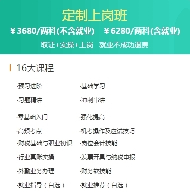 定制上崗班能夠幫助大家考取2018年初級(jí)會(huì)計(jì)職稱證書,同時(shí)提升實(shí)操技能和財(cái)務(wù)工作能力,為升職加薪做準(zhǔn)備。定制上崗班分為含就業(yè)服務(wù)(就業(yè)不成功退費(fèi))和不含就業(yè)服務(wù)。考生們可以根據(jù)自己的需求進(jìn)行選擇。預(yù)祝各位考生夢(mèng)想成真!