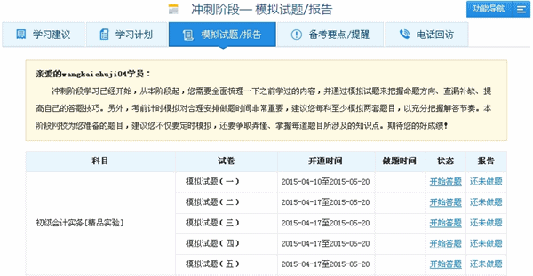 備注:目前模擬試題已經(jīng)全部開(kāi)通,請(qǐng)大家抓緊時(shí)間練習(xí)!