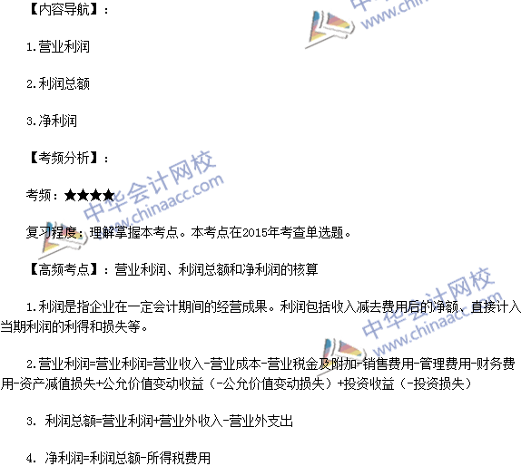 2016年初級會計職稱備考已經(jīng)進(jìn)入最后的沖刺階段,為幫助考生們高效備考,正保會計網(wǎng)校教學(xué)專家根據(jù)豐富的教學(xué)經(jīng)驗,整理了初級會計職稱各科的高頻考點。下面是《初級會計實務(wù)》第六章利潤第一節(jié)營業(yè)外收支的內(nèi)容。