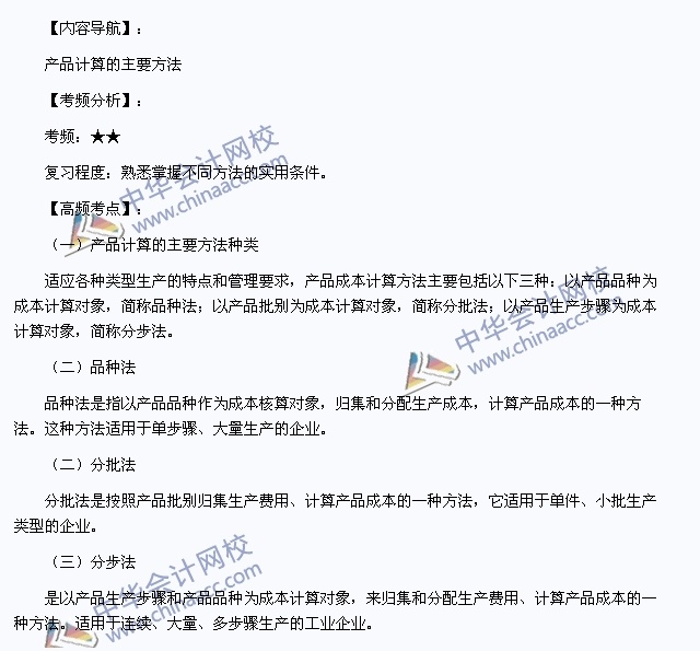 2013初級職稱《初級會計實務》高頻考點:產品計算的主要方法