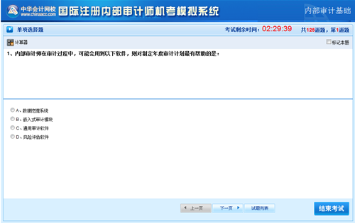 正保會計網校國際注冊內審師(CIA)考試機考模擬系統激揚上線,操作界面簡易直觀,操作便捷合理。給你真實考場的完美體驗,讓您考前輕松練習,考試輕松通過!