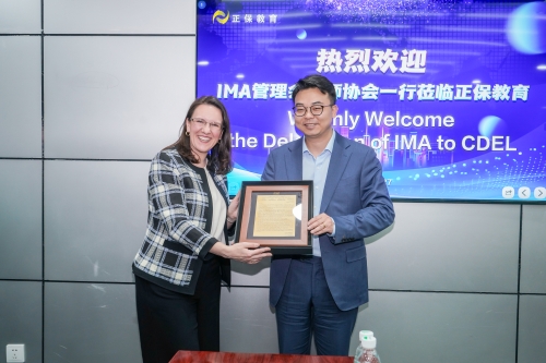 2024年3月27日,IMA全球合作業務與發展高級副總裁Dianna Steinbach女士及IMA全球副總裁兼中國區首席代表李剛先生攜參訪團一行蒞臨正保教育,正保教育對參訪團的到來表示熱烈歡迎。雙方就戰略合作事項進行深入溝通交流。