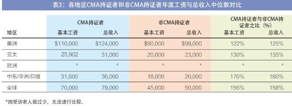 此前,管理會計師協會IMA公布了2021年全球薪酬調查結果的詳細報告。報告表明:全球各地區CMA持證者的基本工資及總收入中位數明顯高于非CMA持證者,總體而言,CMA持證者的總收入中位數比非CMA持證者高出29,000美元,即高出58%。