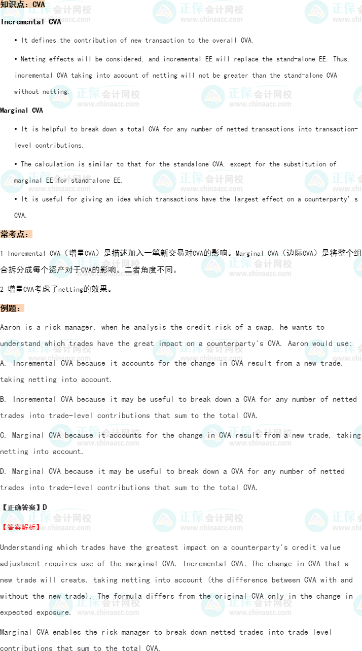 不過不用擔心,信用風險計量與管理部分的重點知識,正保會計網校的老師已經給大家整理出來啦!搭配例題解析,能幫助大家更好的理解和掌握知識點!今天來學習信用風險計量與管理中的CVA部分吧!