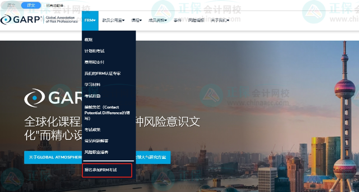 一、打開GARP協(xié)會官網(wǎng),在FRM導(dǎo)航下,選擇倒計時一項(xiàng):報名參加FRM考試。