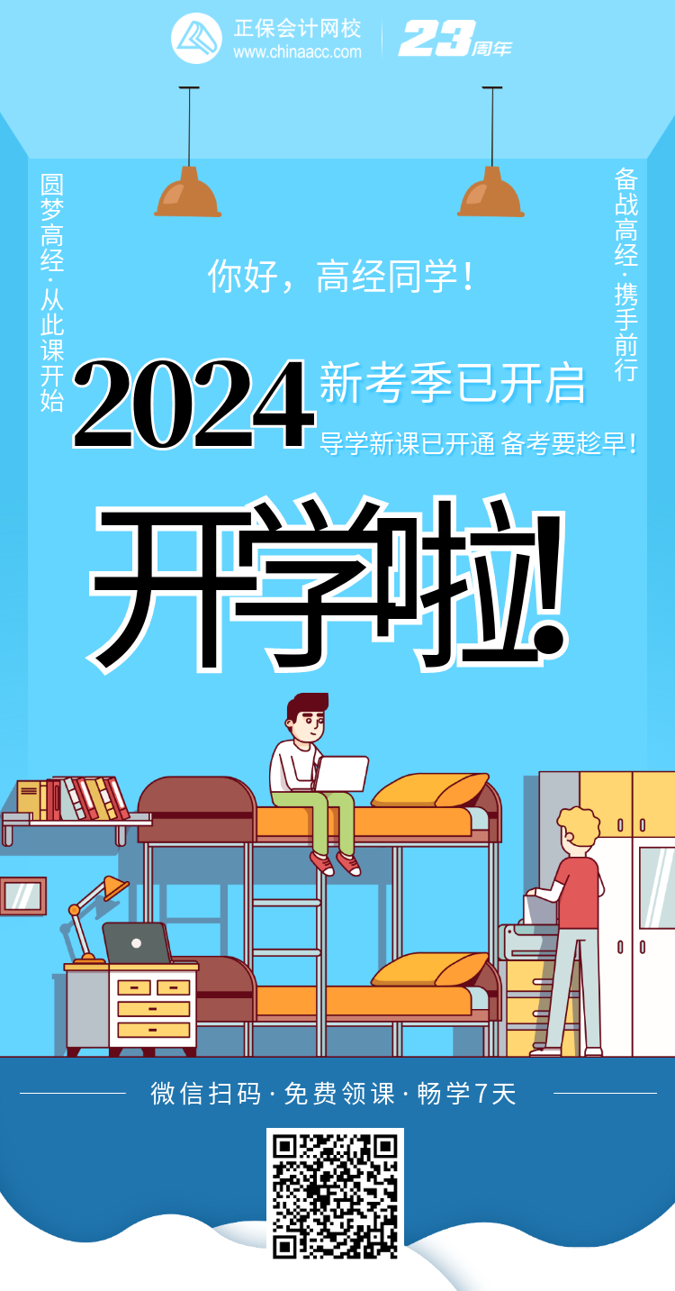 你好,高經同學!開學啦!2024年高級經濟師導學新課已開通!超值精品班課程免費送你,暢學7天!還在等什么?馬上領取吧>>