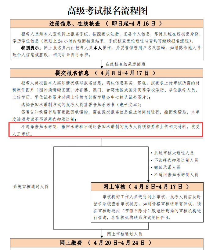 網(wǎng)校解答:參考2022年北京高級經(jīng)濟(jì)師報(bào)名通知規(guī)定可知,不需要去現(xiàn)場資格審核。不選擇告知承諾制、撤回承諾制和不適用告知承諾制的報(bào)考人員須按要求上傳相關(guān)資料,接受人工審核。截圖如下: