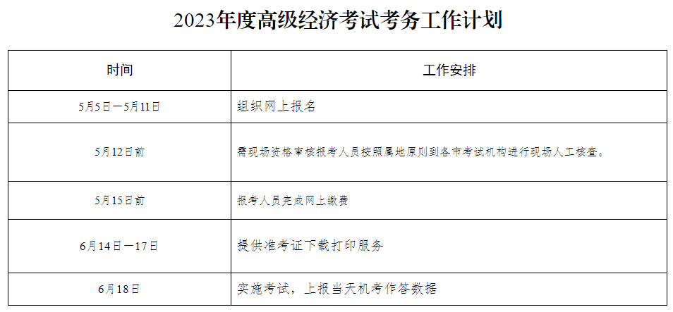 根據人力資源和社會保障部人事考試中心《關于做好2023年度高級經濟專業技術資格考試考務工作的通知》(人考中心函〔2023〕24號)精神,為做好我省高級經濟考試考務工作,現將有關事項通知如下: