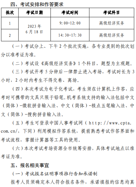 北京人事考試網:北京2023年高級經濟師考試報名通知