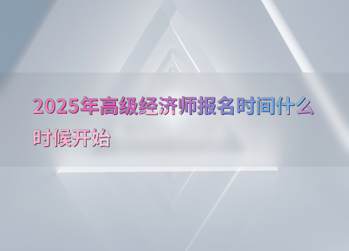 2025年高級經(jīng)濟師考試報名時間預(yù)計為4月9日-4月28日,各地報名開始和結(jié)束日期可能有所不同。