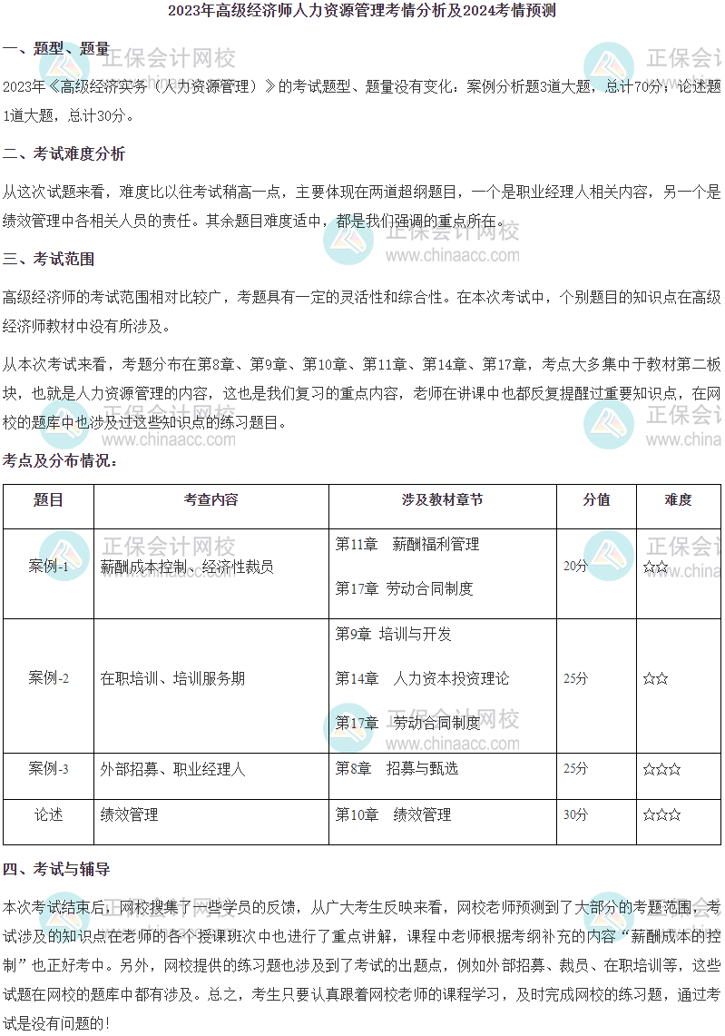 2023年高級經濟師人力資源管理考情分析及2024考情預測