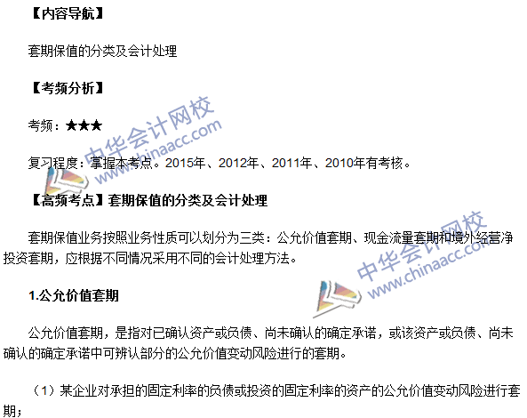 高會《高級會計實務》高頻考點:套期保值的分類及會計處理