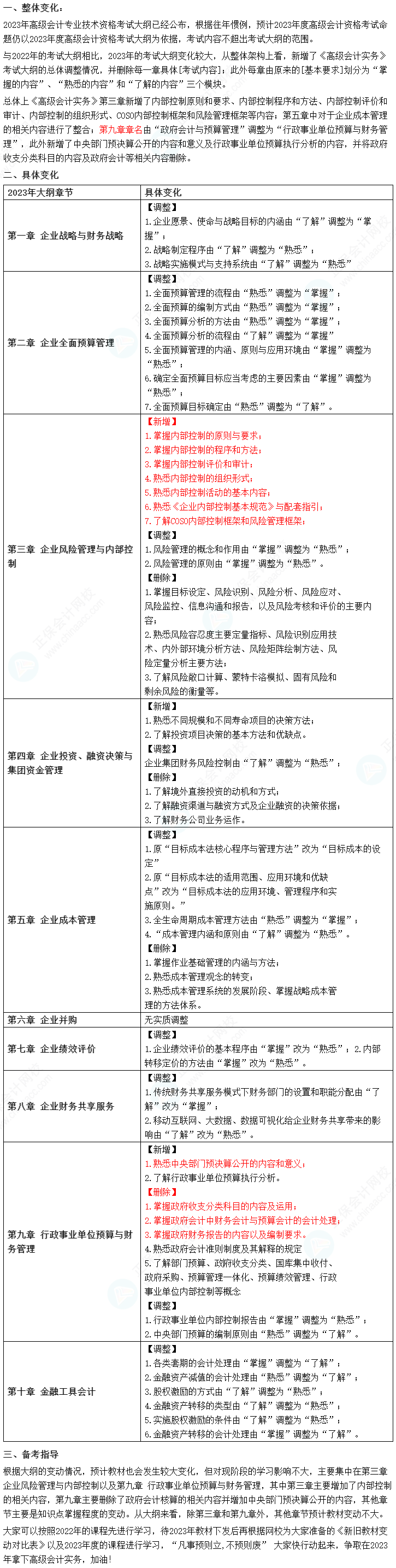 重磅!2023高級會計專業技術資格考試大綱變化及解讀!