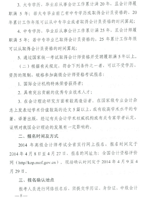 云南2014年高級會計師考試報名時間4月8日至4月27日