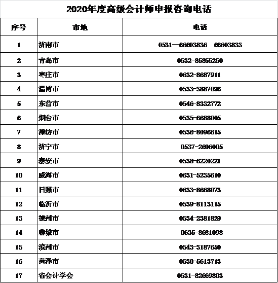 山東會計信息網發布了山東省2020年高級會計師申報咨詢電話,具體詳情如下: