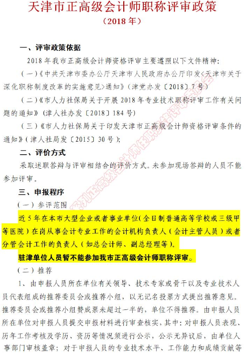 天津2018年正高級會計師職稱評審政策如下,采取述職答辯與評審相結(jié)合的評價方式,未參加現(xiàn)場答辯的人員不能參加評審。