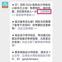 說明:預約報名入口開通提醒服務后,報名入口開通時會收到網校的提醒消息,以防各位考生遺忘或錯過報名。