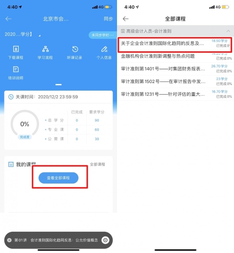 開通課程后,點擊課程列表中的“進入聽課”按鈕進入,并選擇一種適合您當前網絡環境的聽課方式后,開始聽課。(總學分不能少于90學分,包括公需科目和專業科目內容,其中專業科目內容學分不能少于總學分的三分之二)。