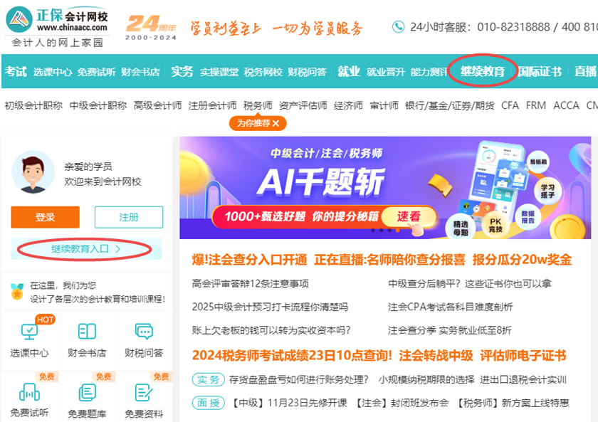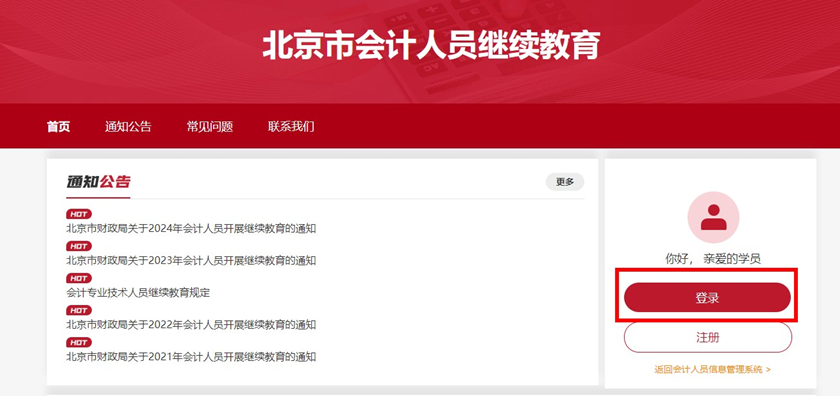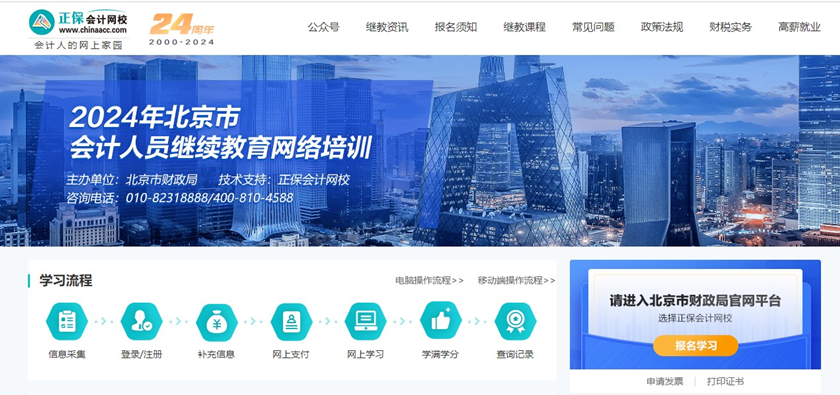 以北京為例外, 打開正保會計網校網頁后,點擊導航處“繼續教育”,進入后在列表中選擇“北京”進行報名學習。一鍵直達>>