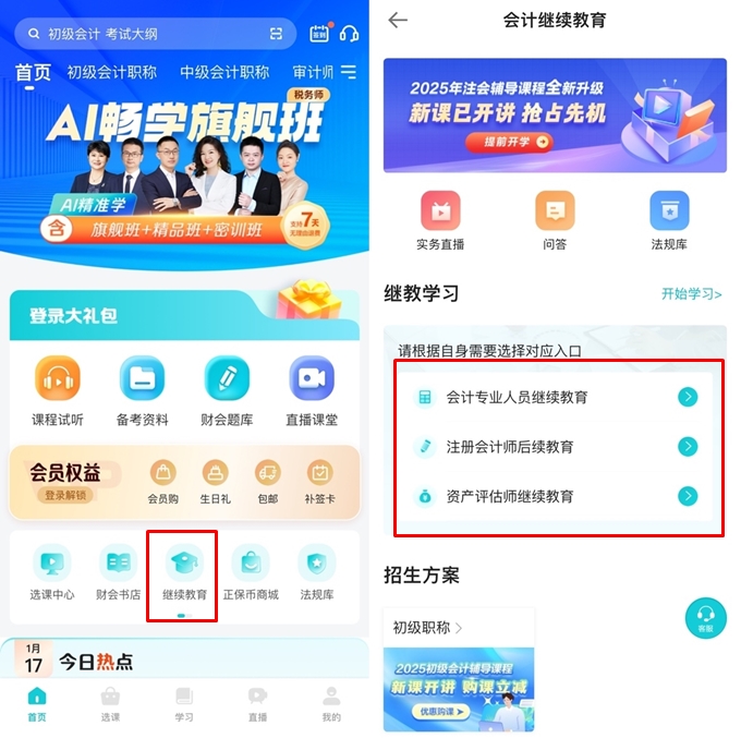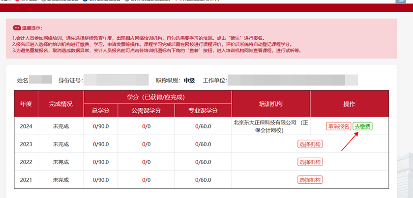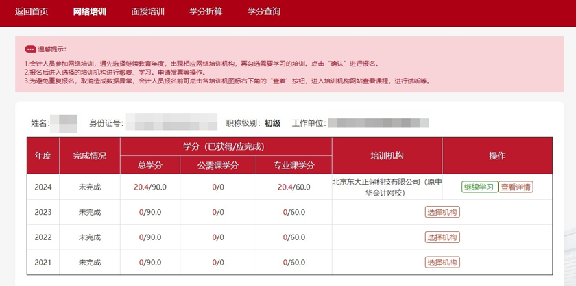 會計人員信息采集完成后再進行繼續教育,登錄“會計人員信息管理系統”后點擊“繼續教育”選擇網絡教育或面授教育機構進行學習,學習完成后系統自動上傳學分。